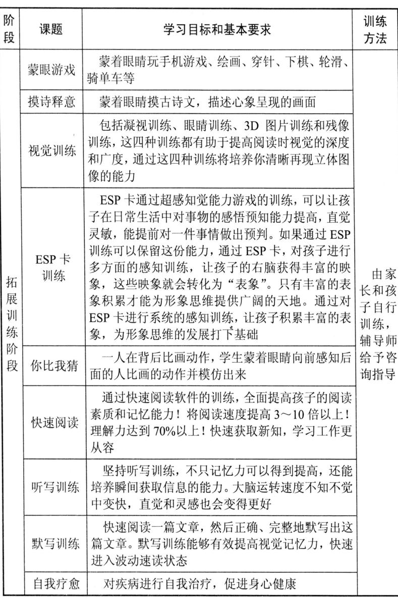 This book also provides some methodological guidance on the connection between right brain development and school education, so that students can apply what they have learned. Extension training mainly enriches the basic training of right brain development, laying the foundation for photographic memory and wave speed reading.